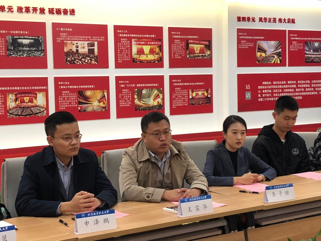 在一同观看《今日北航》宣传片后,交流座谈会正式开始,本次会议由士嘉书院本科学生党支部副书记李子晗主持,李子晗代表书院对恒大幸福家园第二社区党支部诚来相约共建表达了热烈欢迎和由衷感谢。