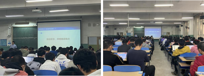 主讲人张超老师则按照时间顺序为同学们介绍了历史上的改革。课程中首先介绍了朱元璋的改革,结合当时的时代背景和改革家的身世分析改革的局限性和时代性。接着,课程介绍了新中国时期中国实施的改革开放的政策,并分别对比了现代中国和古代中国采取的改革以及国内和国外的不同改革,深化了同学们对改革开放的认识和认同。最后,张超老师勉励同学们承担历史使命,接过改革开放的接力棒,跑好新一代的长征路。
