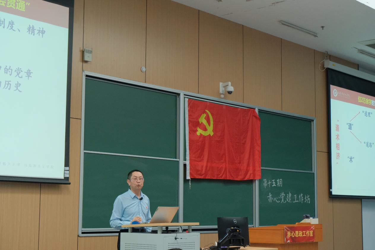 10月8日下午,由马克思主义学院高宁老师主讲第一节专题思政课《结合党史学党章——以<入党誓词>为例》正式开讲。知行书院、沈元学院的入党积极分子、老师及辅导员300余人参加本次党课。