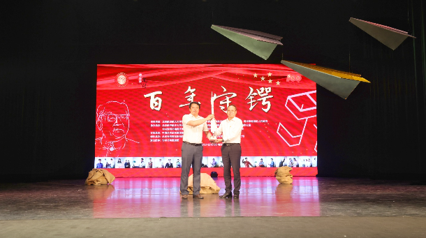 在演出正式开始前,校团委、守锷书院负责人与南浔区领导一起回顾了近年来双方联合举办的“守锷101周年纪念活动暨屠守锷奖学金启动仪式”、建设“大学生红色‘1+1’实践基地”和“大学生社会实践基地”等友好合作,期待未来在爱国主义教育、美育文化建设等方面进一步加深合作。随后,北航校团委书记庄岩代表北航向南浔区赠送了“长征2号”运载火箭(由屠守锷院士领导设计)模型。