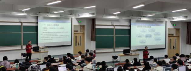 讲座开始,马喜亭老师以幽默的语言与同学们探讨了“内卷”等热点问题,引导同学们理性看待内卷竞争等现象,并激励同学们始终保持上进心,学会将压力转换成动力。主题报告通过系列问题引导同学们思考自己与北航的关系,从适应与选择、大学新生活、大学新要求、大学新发展四个方面讲解了如何走稳走好大学的道路。马喜亭表示,同学们要让自己的心理和行为更贴近环境变化和自身发展,同时要明白大学生的本职工作,合理增负,及时转变身份,实现个人的成长蜕变。他寄语同学们要“学会生存、学会生活、学会做人、学会学习”,希望同学们能养成自尊自信、理性平和、积极向上的健康心态,以积极的心态迎接大学生活的挑战。