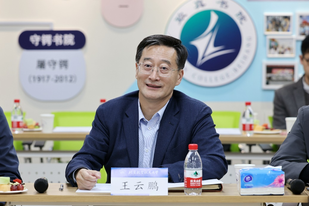 在听取同学们对于专业认知教育的思考后,王云鹏谈到,要进一步探索专业认知教育模式,加强北航学院与各专业学院的协同联动,充分调动各类教学资源,统筹推进课程、教材、平台、团队等一体化建设,有组织地面向大一学生开放各类高水平实验室,打造更多的现场教学等生动课堂,进一步发挥通识课程的作用,提供更加多元化的 “课程套餐”,努力营造积极向上的创新氛围,激发同学们投身科研创新的兴趣和动力。