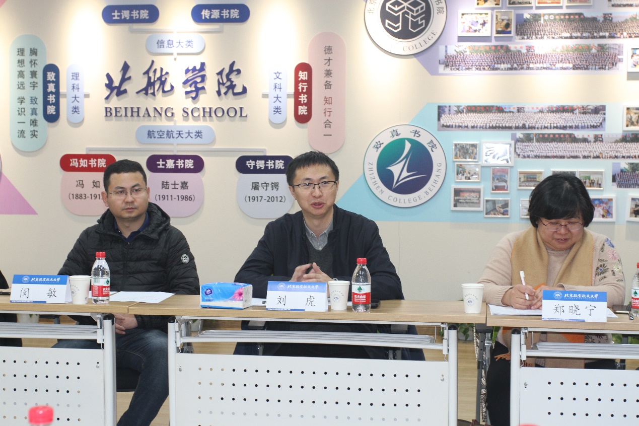 (通讯员 任道安 吕经纬/文 刘蔚文沛/摄影) 12月11日下午,北航学院在沙河校区西区“一站式”学生社区召开专属导师团与学生代表座谈会。北航学院院长刘虎、教学工作部副部长郑晓宁、致真书院执行院长闵敏、知行书院执行院长王亚、致真书院和知行书院专职辅导员与北航学院理科大类和文科大类的12名本科生代表交流座谈。座谈会由士嘉书院执行院长吕经纬主持。