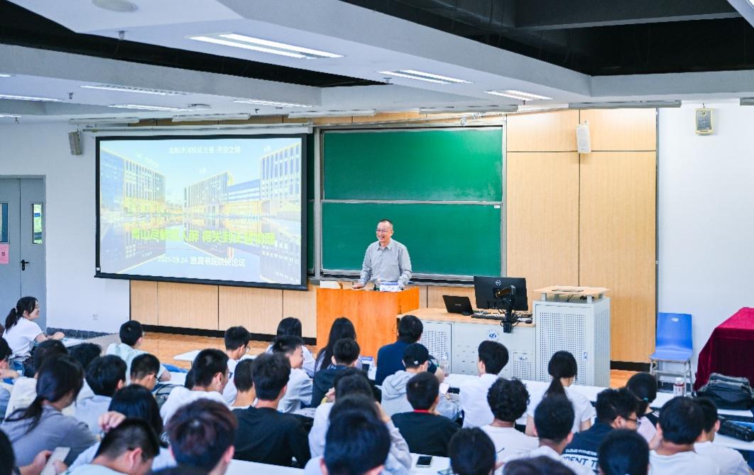 (通讯员 李非 杨晶晶)为进一步做好专业认知教育,培养学生科学、系统的行业认知观和专业选择观,9月24日下午,致真书院“青山尽解招人醉 得失到头皆物理”院长讲坛于沙河校区j3-107举行。本次院长讲坛由物理学院院长吕广宏主讲,物理学院应用物理系教授钟晓岚、分团委书记宋树洋、专职辅导员李思瑶,致真书院团委书记毋艺臻、专职辅导员李非、学业助理丁贝贝、兼职辅导员左芮玮和致真书院全体2025级本科生参加讲坛。