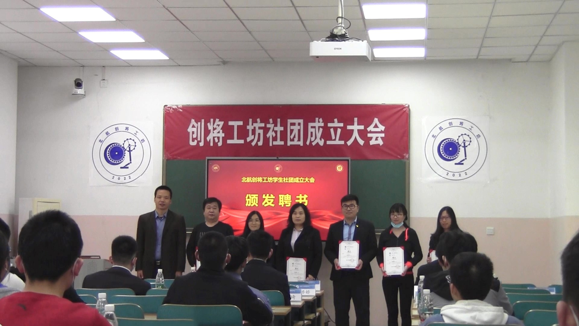 (通讯员 孙治博)2022年4月2日下午,北航“创将工坊”学生社团成立大会在沙河校区工训楼南315召开。“创将工坊”学生社团是依托北航学院工程训练中心成立的科技类学生社团,旨在为学生创新实践活动提供支持,服务各类国内、国际大学生科创竞赛,为同学们提供服务与资源。北航学院院长兼工程训练中心主任钱政致辞,宣布社团正式成立,随后为社团指导教师颁发聘书,工程训练中心副主任袁媛为社团负责人颁发证书。“创将工坊”学....