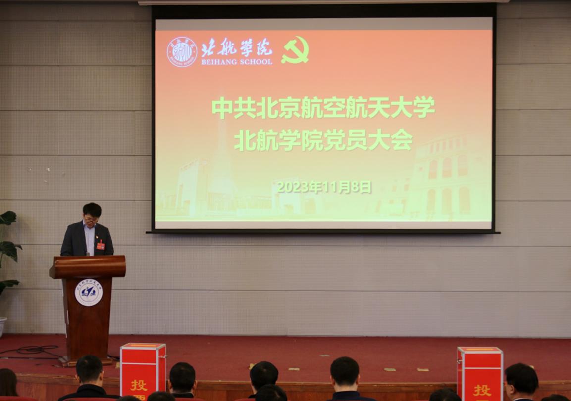 (通讯员 许佳楠)11月8日下午,北航学院党员大会在沙河校区实验4号楼205报告厅召开。学院党委书记宋晓东代表学院第一届党委向大会作工作报告,学院党员听取报告并选举新一届党委委员。校党委组织部正处级组织员何情到会指导,学院党政办公室主任马炳涛主持会议。大会在雄壮的国歌声中正式开始,宋晓东同志代表第一届党委做题为《学习贯彻党的二十大精神 践行北航育人育才初心 为建设北航特色的大类人才培养新模式而努力奋斗》....